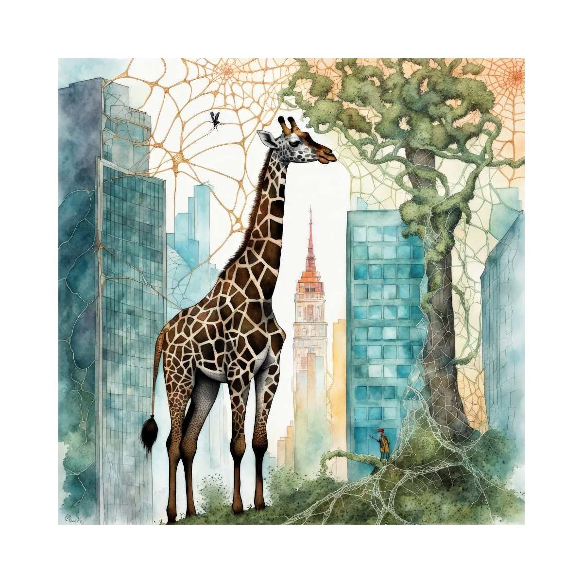 - Design: A colorful, abstract giraffe illustration that blends contemporary art with nature.