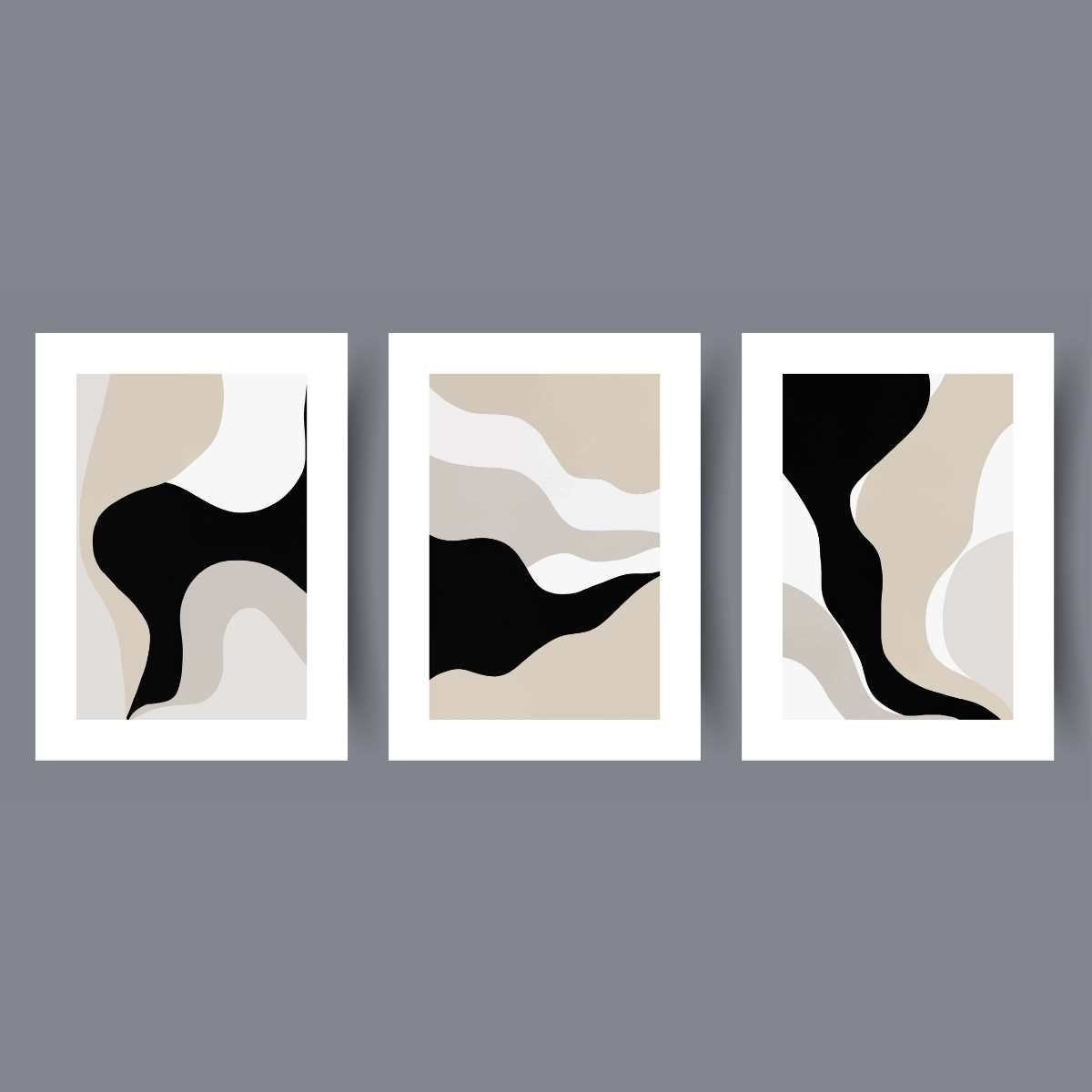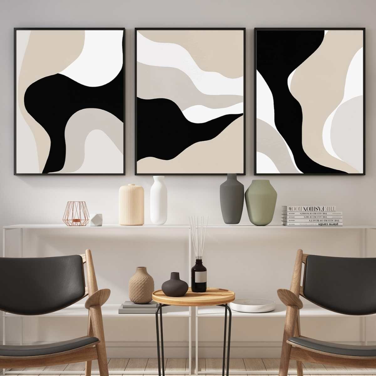 - Geometric Scandinavian Design: Modern, minimalist abstract art with clean lines and neutral black and beige tones.